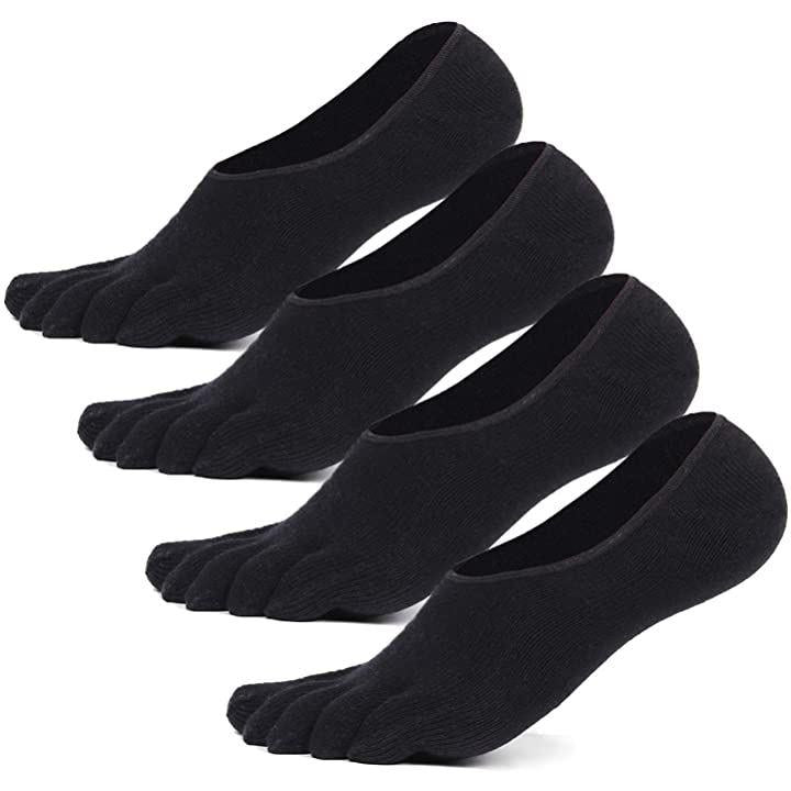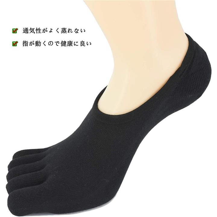 ツジヤ 五本指ソックス メンズ くるぶし 靴下 5本指 フットカバー 無地 黒 25~27cm 4足セット