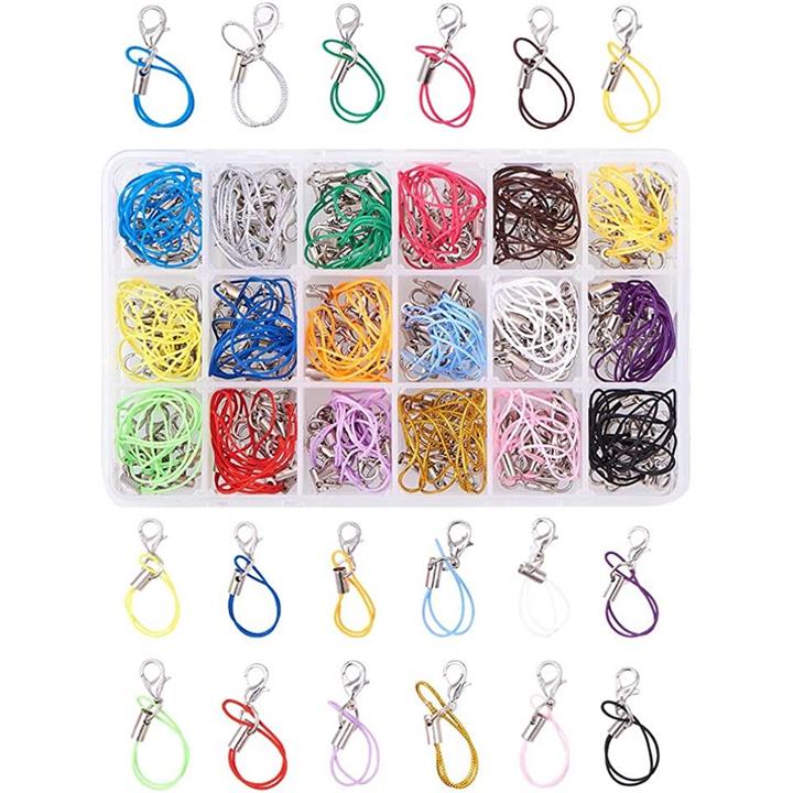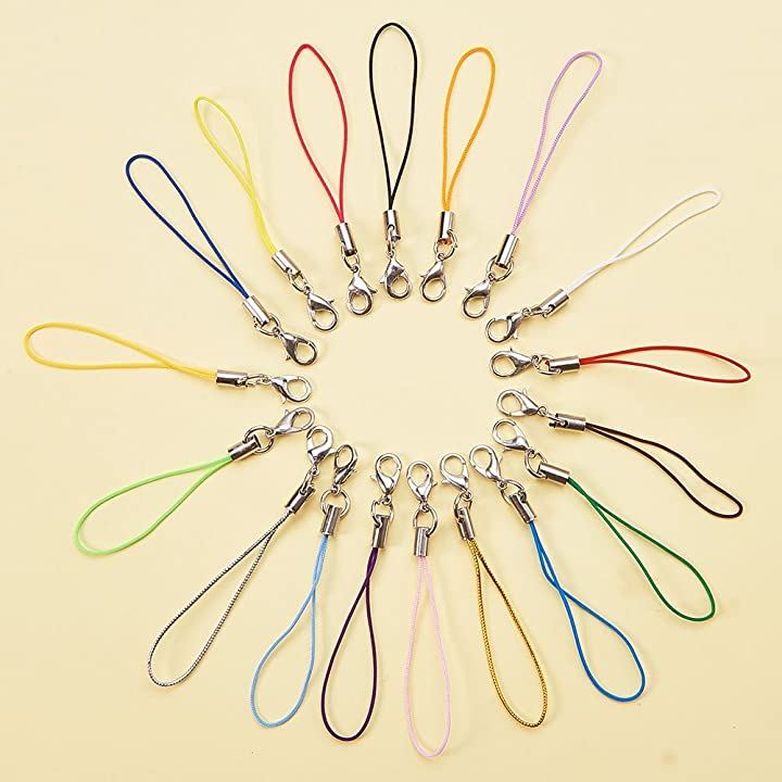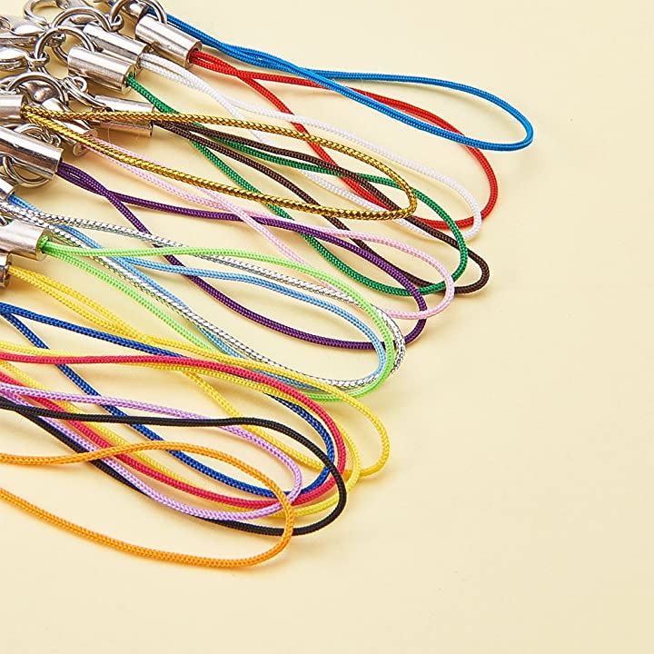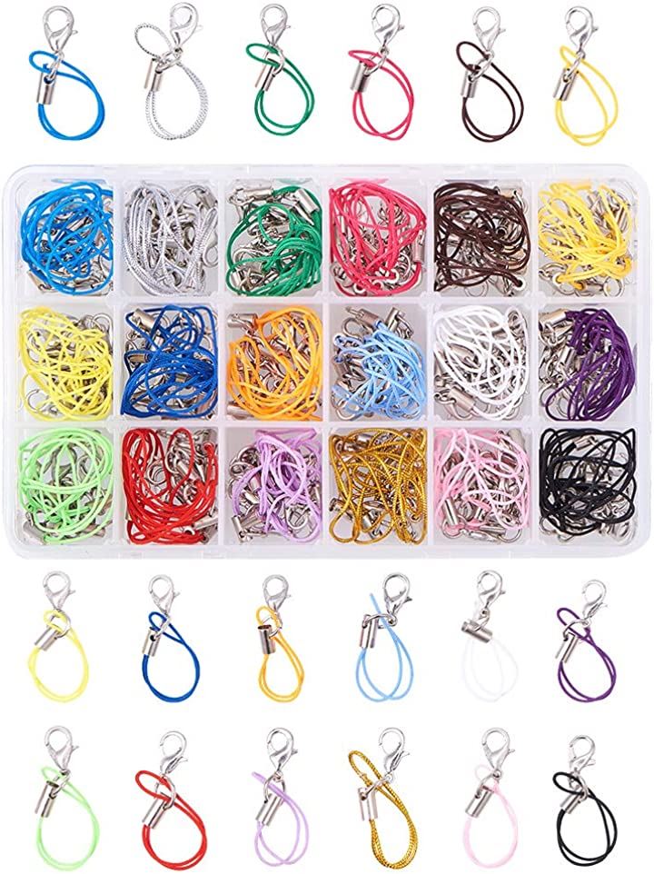 PandaHall カニカン付ストラップ 180個 18色 長さ70mm 携帯ストラップ ポリエステル糸装飾用紐