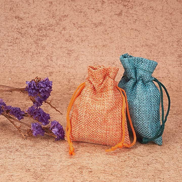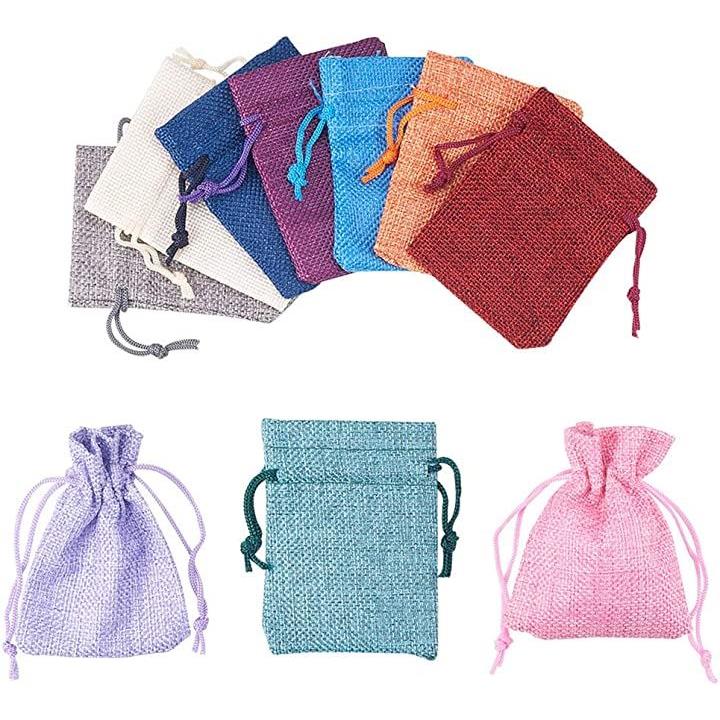 巾着袋 ラッピング袋 10枚入り 9x7cm 紐付き 和風収納袋 コットン袋 麻布袋 無地 ギフトバッグ ジュエリーポーチ