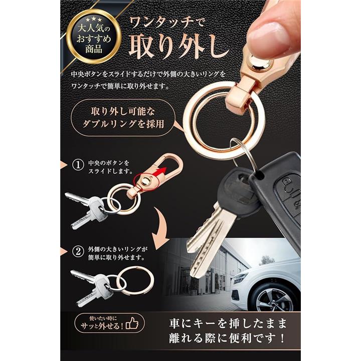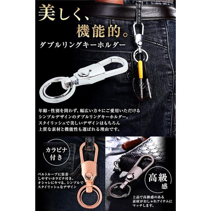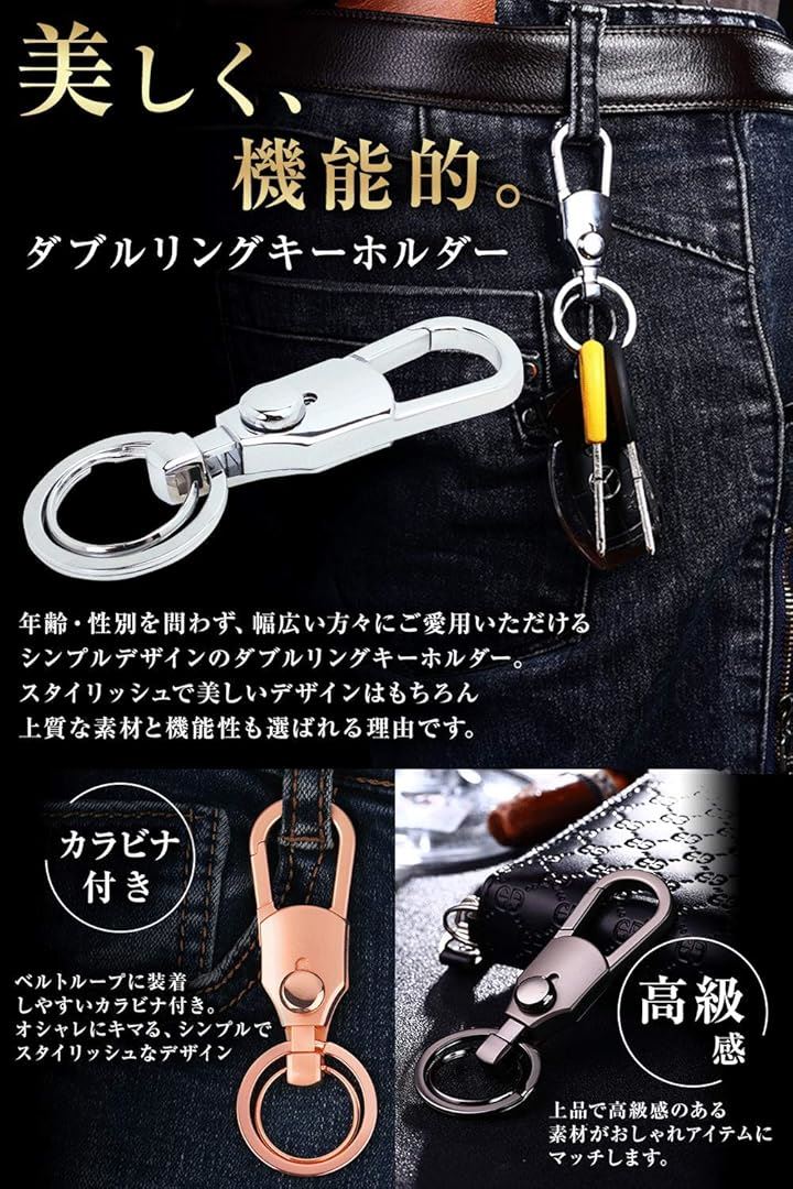 ダブルリング カラビナ キーホルダー 車 バイク 自転車 ワンタッチ 取り外し シンプルデザイン