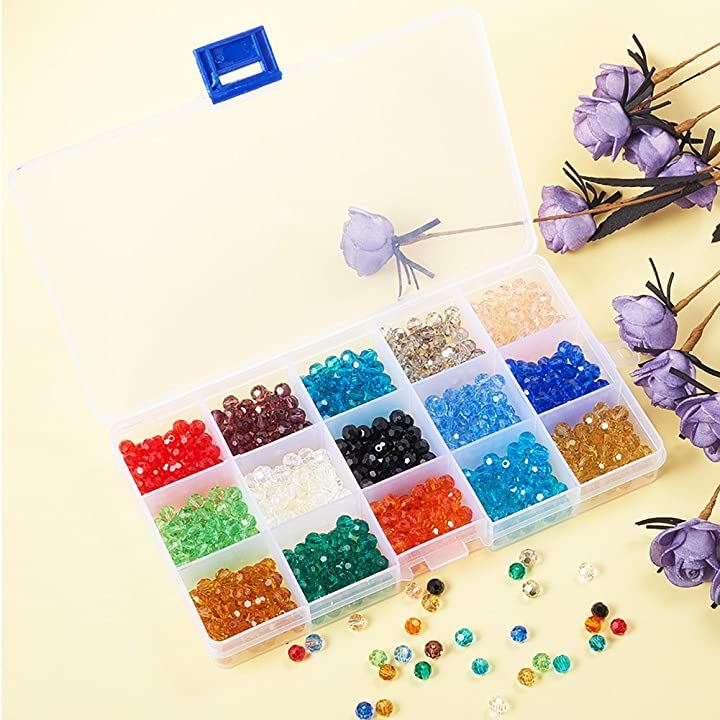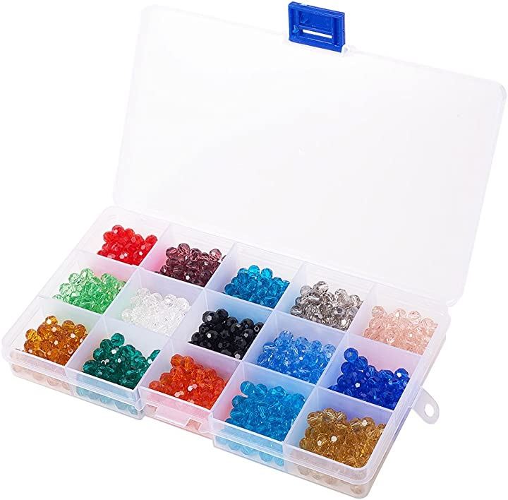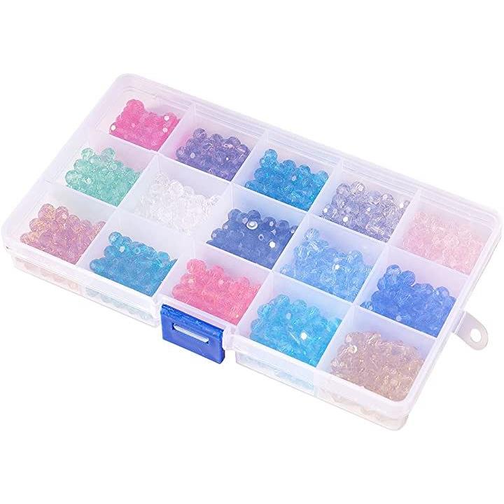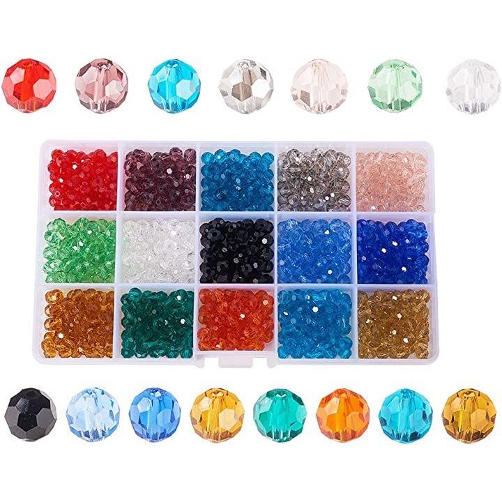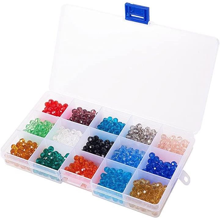 約750個/箱 6mm 15色 ガラスビーズ そろばん 多面的 カット オーストリア ジュエリー用 UVレジン 封入 DIY用 手芸材料 手作り 素材 ハンドメイド 混合色