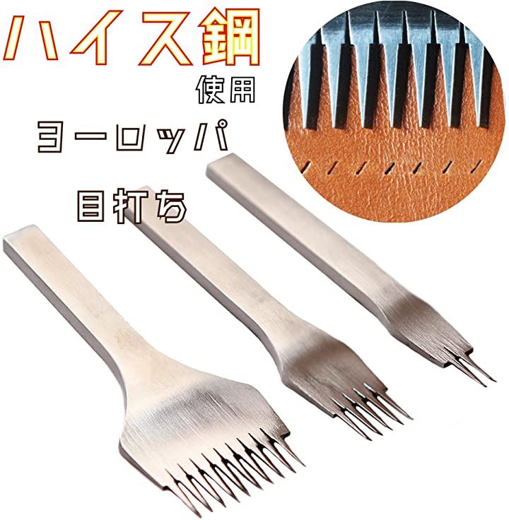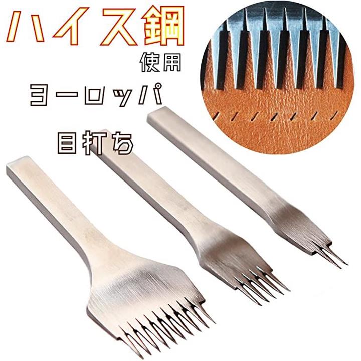 ヨーロッパ目打ち 3本 レザークラフト ツール ハイス鋼 鋭角 ハンドメイド仕上げ a532