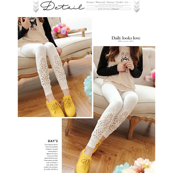 おしゃれ 花柄 刺繍 10分丈 スパッツ レディース レース レースレギンス フリーサイズ