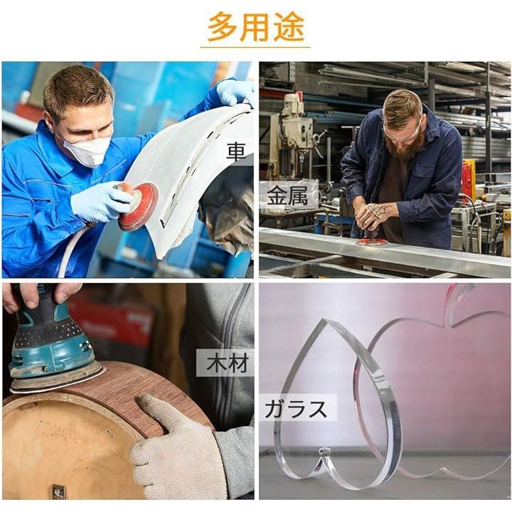 サンディングペーパー サンドペーパー 100枚 粒度 穴なし マジック式 紙やすり φ152mm セット 研磨 サンダー用 丸型 ディスク エアーサンダー丸パッド 木工用 吸じんランダムアクションサンダー用 ミニルーター用 交換パーツ