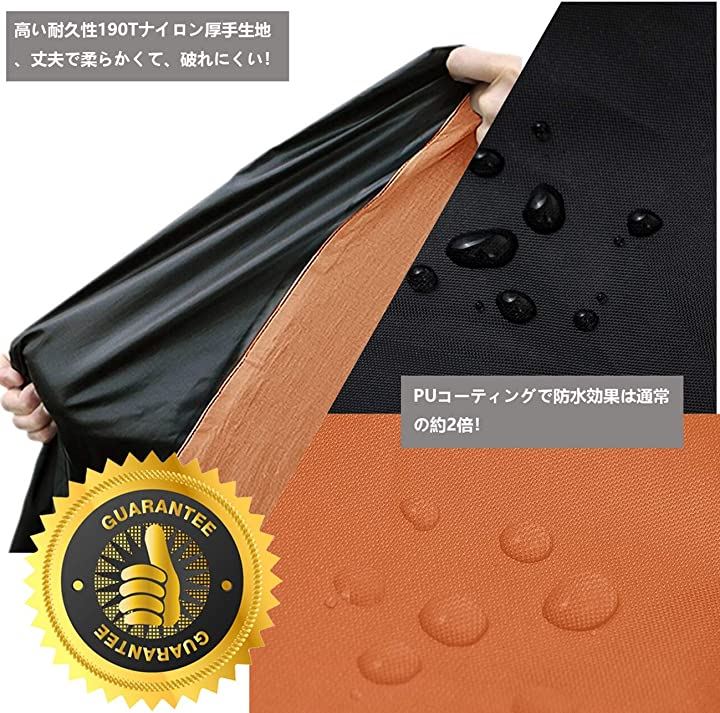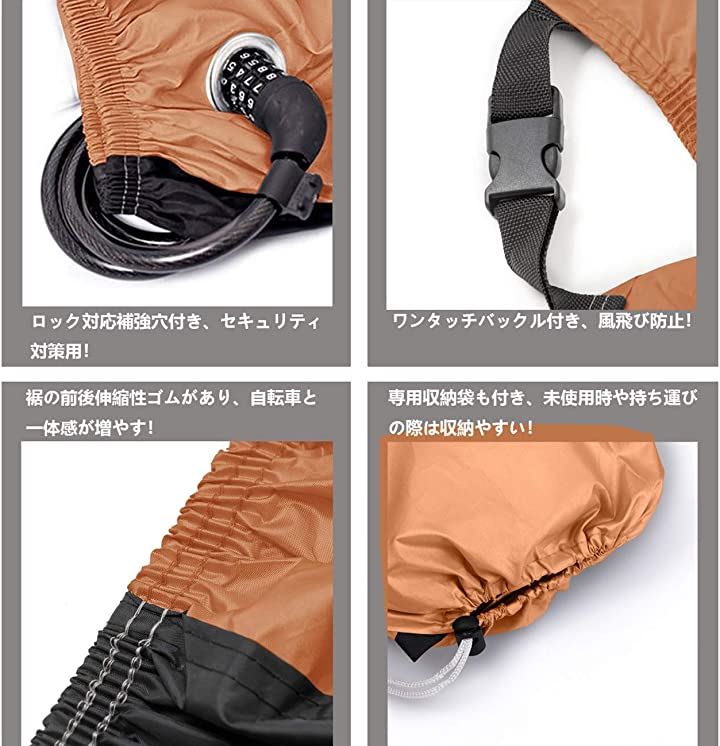 「耐久性に優れた素材」高品質素材、高い耐久性190T高密度の100%ナイロン生地、表には撥水加工、裏面ウレタンコーティングで高い防水性従来自転車カバーに比べて、耐久性、防水性、防風力、通気性、耐腐食性など各機能をアップしました。。