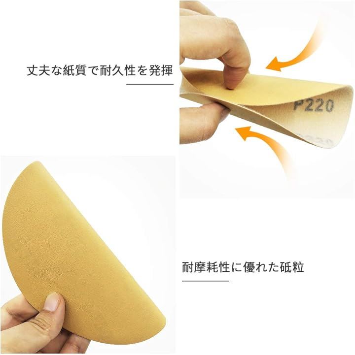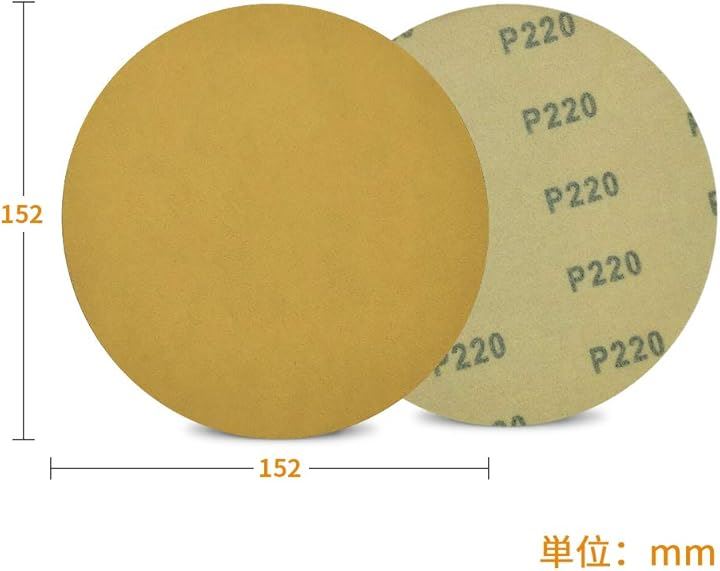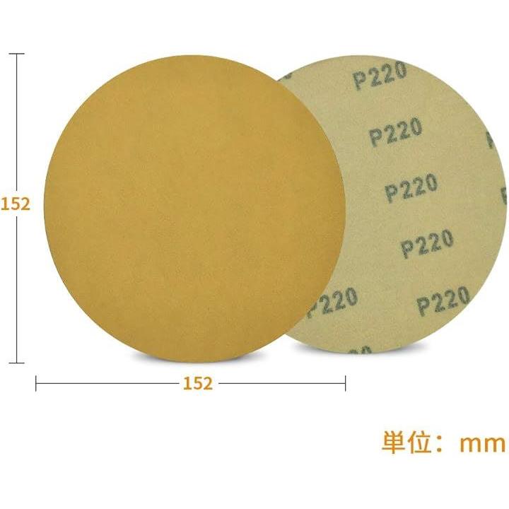 サンディングペーパー サンドペーパー 100枚 粒度 #220 穴なし マジック式 紙やすり φ152mm セット 研磨 サンダー用 丸型 ディスク エアーサンダー丸パッド 木工用 吸じんランダムアクションサンダー用 ミニルーター用 交換パーツ