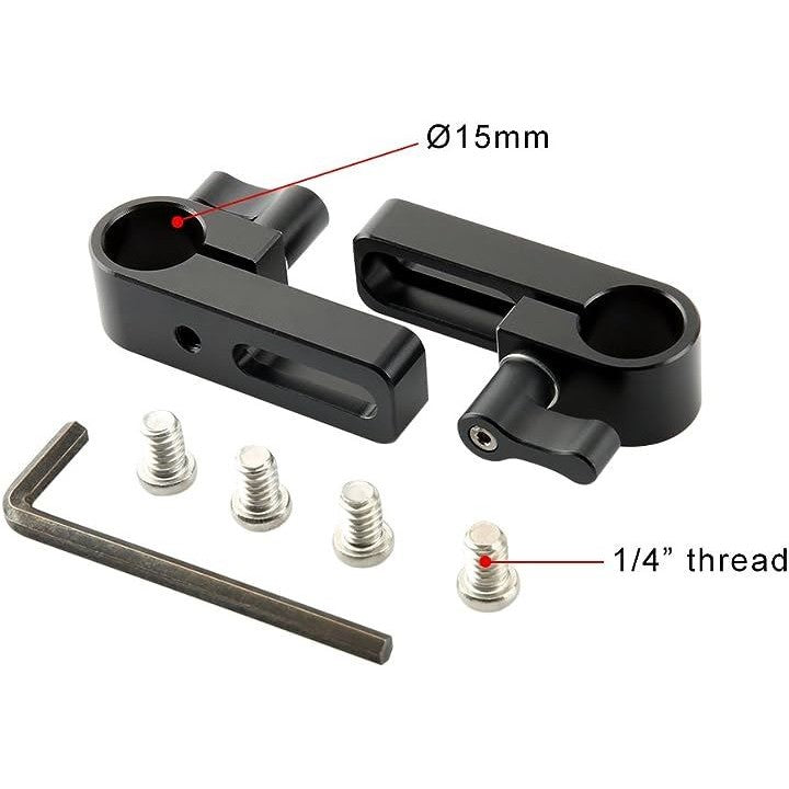 ロッドクランプ 汎用 15mmロッドクランプ シングルロッドクランプ 脱落防止 長孔付き GH5、Emos100、5DMarkIIIなどDSLR装備用 モニター用 2個 ―138
