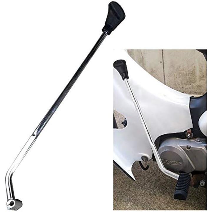 カブの場合、左足で操作するシフトレバーを外して、こちらのレバーを装着するだけの簡単取付。