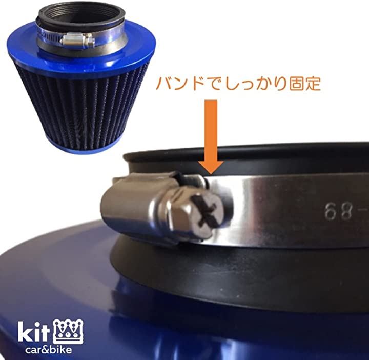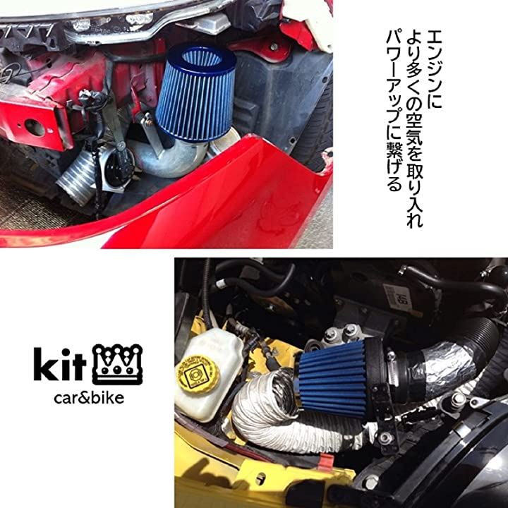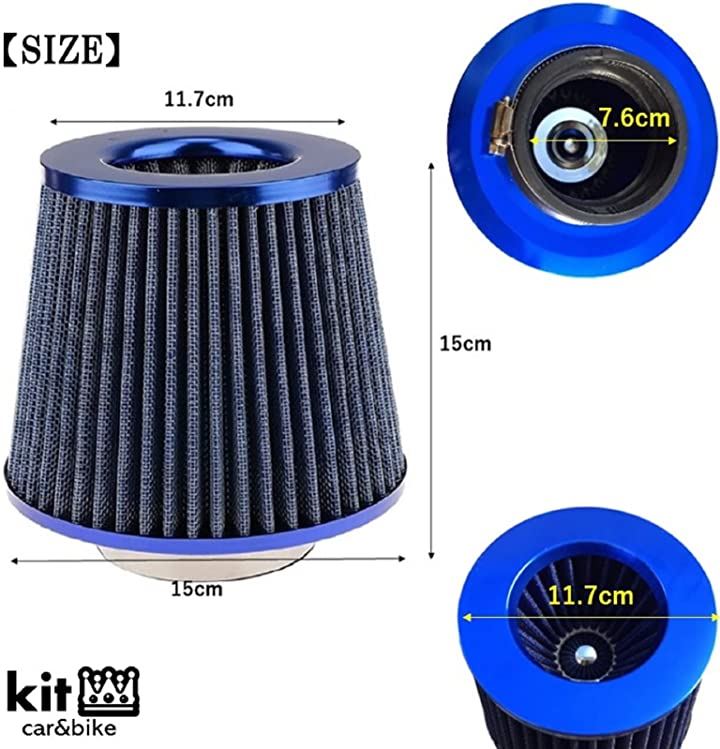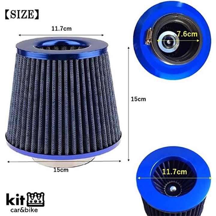 互換品 キット 汎用 車用 高性能 エアフィルター エアクリーナー 吸気 76mm ブルー