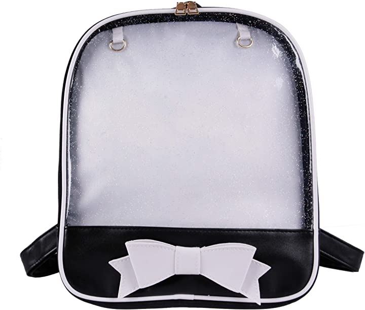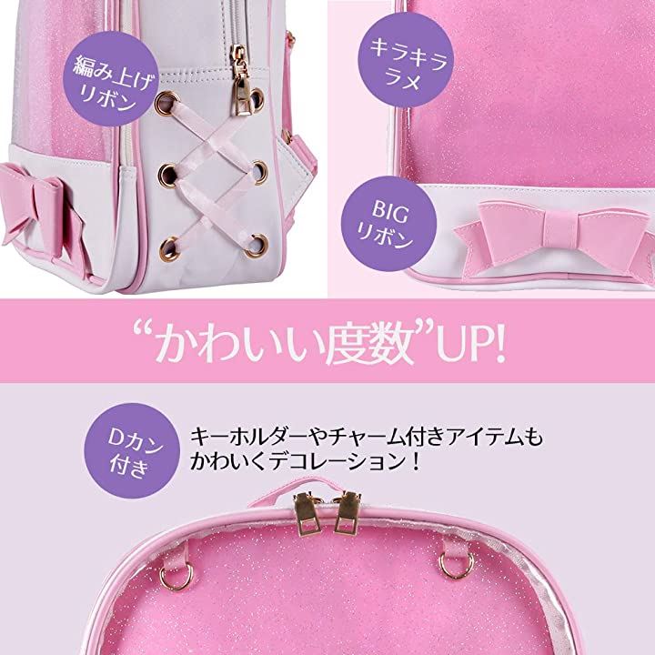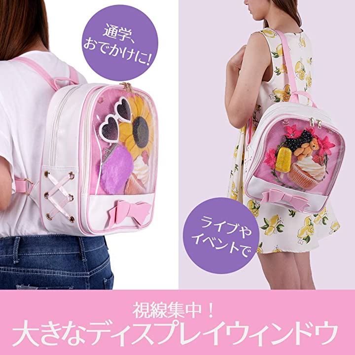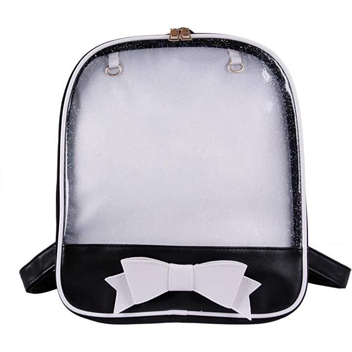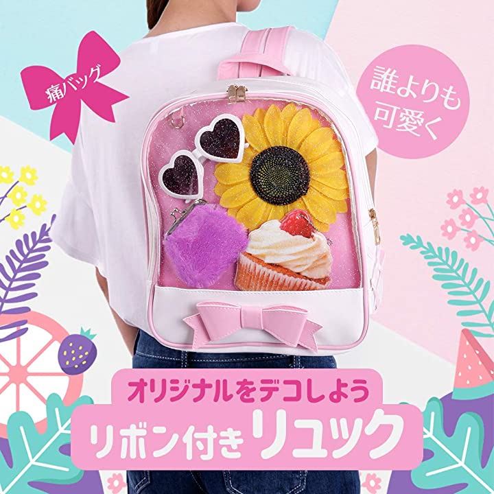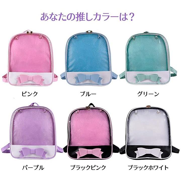 痛バッグ リュック 透明 ビニール PUレザー バック かばん 防水 軽量 デイバック ガールズ レディース おしゃれ 大容量 通学 遠足 イベント用 アウトドア かわいい リボン ブラック ホワイト