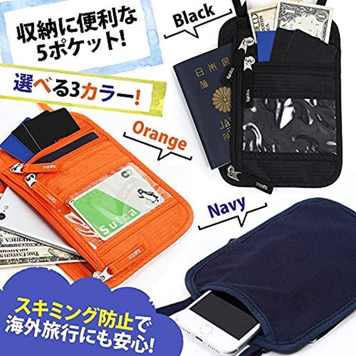 パスポートケース 首下げ スキミング防止 ネックポーチ 便利 貴重品入れ