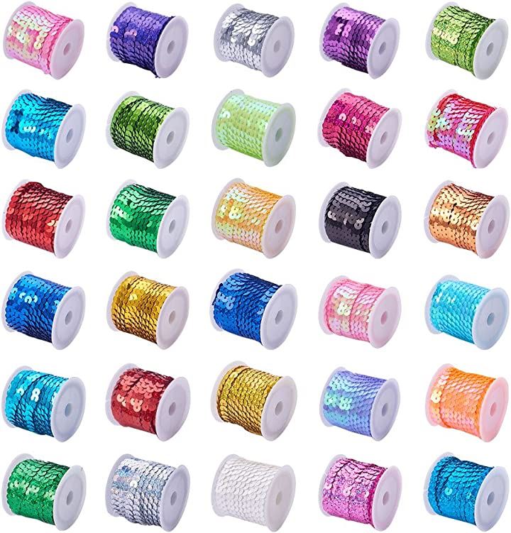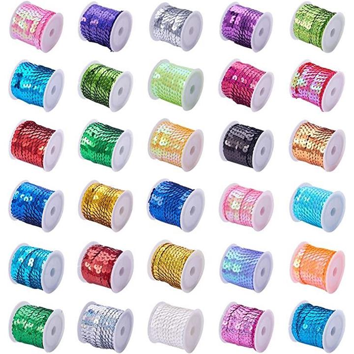 PandaHall ミックス 約30ロール/セット 6mm スパンコール マルチカラー プラスチック製 キラキラ クラフト用品 丸い 手作り用品 DIY用