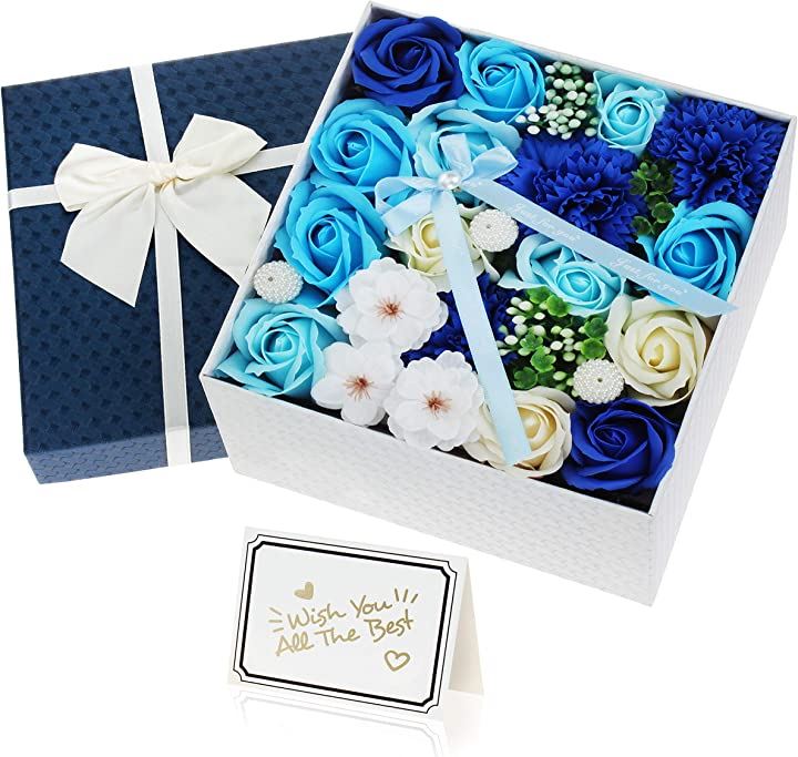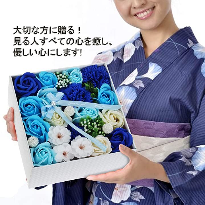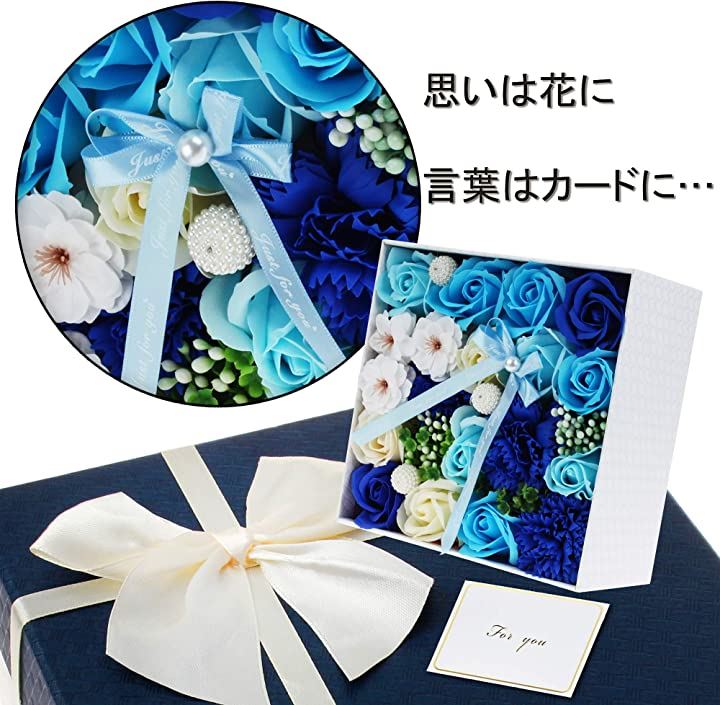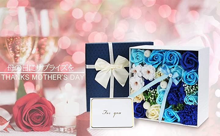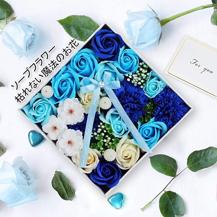 ソープフラワー 青 ボックス入り 創意方形 母の日 還暦祝い 誕生日 記念日 プレゼント 贈り物 贈答品 (ブルー) |