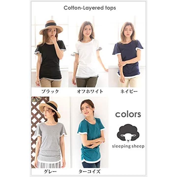 [スリーピングシープ] サイド シャーリング フレア袖 フェイクレイヤード 半袖 Tシャツ カットソー (オフホワイト, LL) |