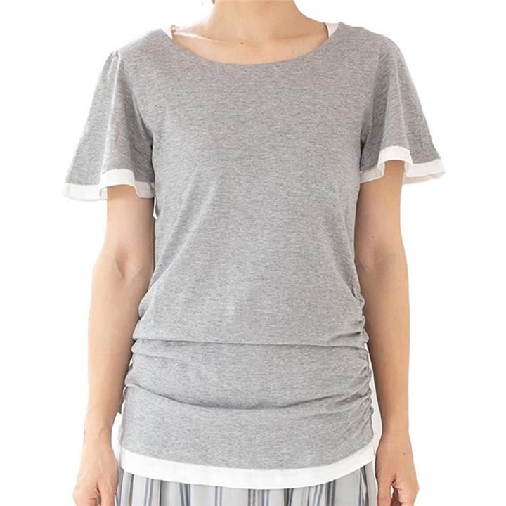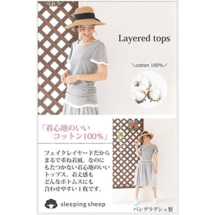 [スリーピングシープ] サイド シャーリング フレア袖 フェイクレイヤード 半袖 Tシャツ カットソー (グレー, LL) |