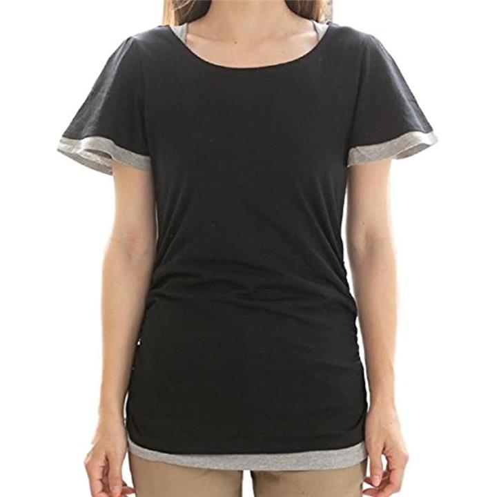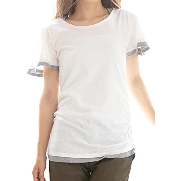 サイドシャーリング フレア袖 フェイク レイヤード 半袖 Tシャツ カットソー |
