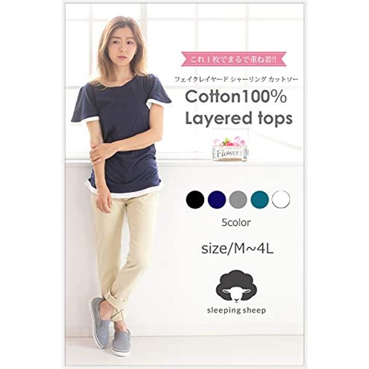 [スリーピングシープ] これ1枚で重ね着風 サイドシャーリング フレア袖 フェイク レイヤード 半袖 Tシャツ カットソー 大きいサイズ M ~ 4L (ネイビー, L) |