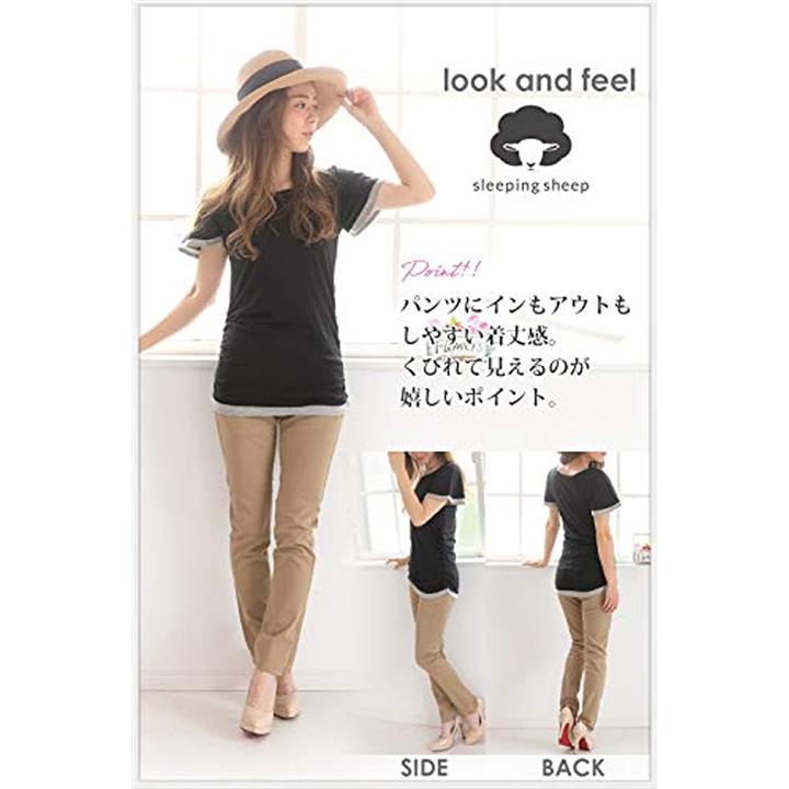 [スリーピングシープ] サイド シャーリング フレア袖 フェイクレイヤード 半袖 Tシャツ カットソー (ブラック, LL) |
