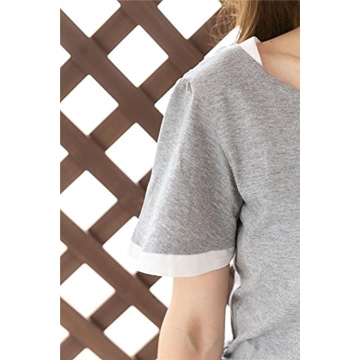 [スリーピングシープ] サイド シャーリング フレア袖 フェイクレイヤード 半袖 Tシャツ カットソー (グレー, L) |
