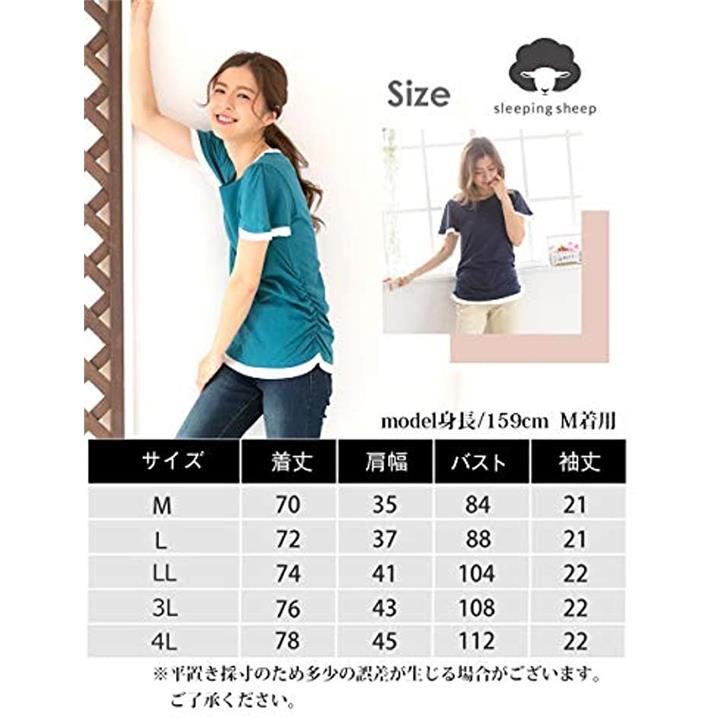 [スリーピングシープ] サイド シャーリング フレア袖 フェイクレイヤード 半袖 Tシャツ カットソー (ネイビー, 3L) |