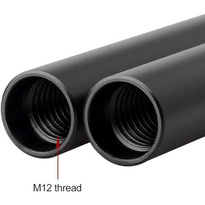 カメラロッド カメラ15mmロッド 2本セット 長さ30cm M12 Thread 穴外径15mm アルミニウム製 カメラアクセサリー 撮影安定性機材 2本入リ 黒 ―R053
