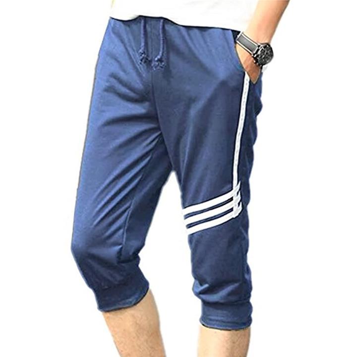 [パリド] 七分丈 ライン ハーフ パンツ スウェット ショート ジャージ スポーツ ウェア (紺 ネイビー, 3XL) めんず |
