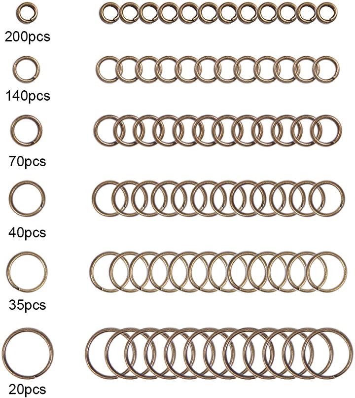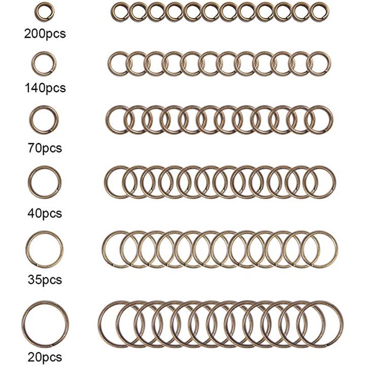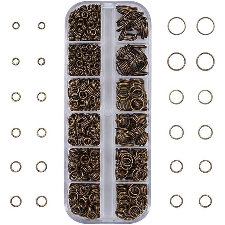 約470個/箱 6種セット 真鍮 二重丸カン 4-10mm直径 リング マルカン 丸環 指貫つき 金具セット 基礎パーツ