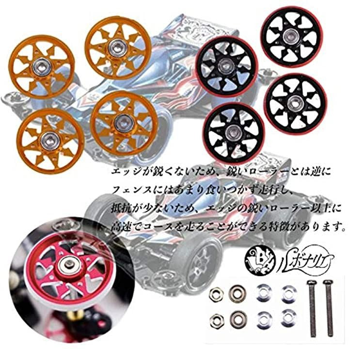 ミニ四駆 ベアリング ローラー チューンナップ パーツ 19mm アルミ スポーク 8本 4個 社外品 汎用 フルセット