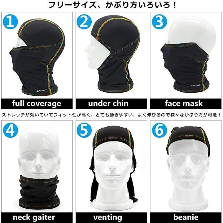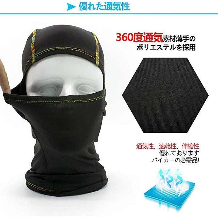 フェイスマスク 多機能目出し帽 通気 速乾 UVカット バラクラバ 男女兼用 紫外線 花粉対策 ヘルメット インナー バイク 自転車 山登り サバイバルゲーム アウトドア用