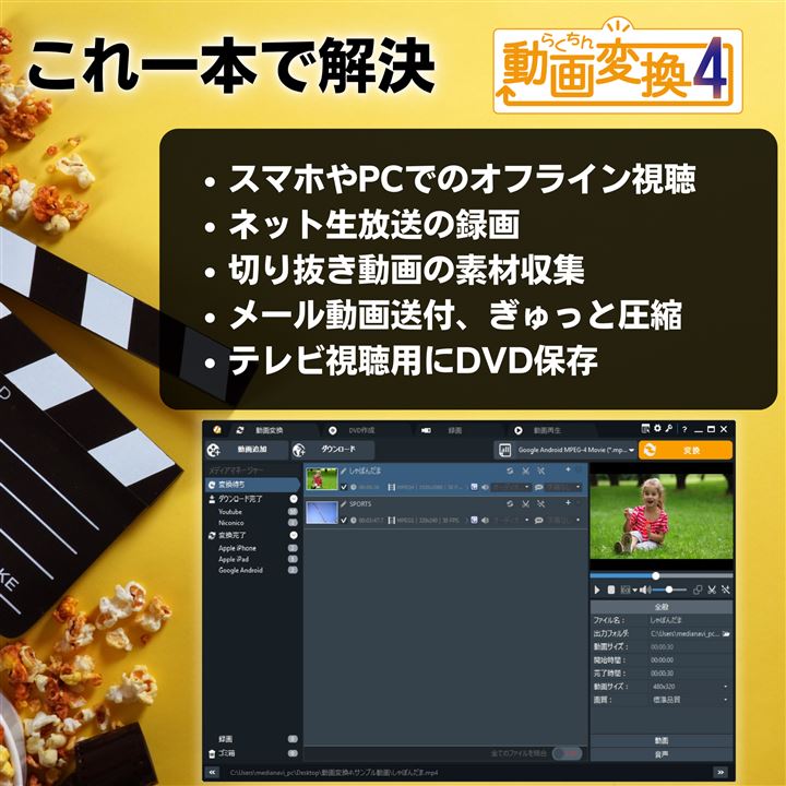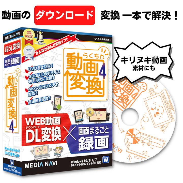 「標準版」動画 ダウンロード 録画 変換 DVD書き込み / メディアナビ らくちん動画変換4+Wi-Fi転送 |