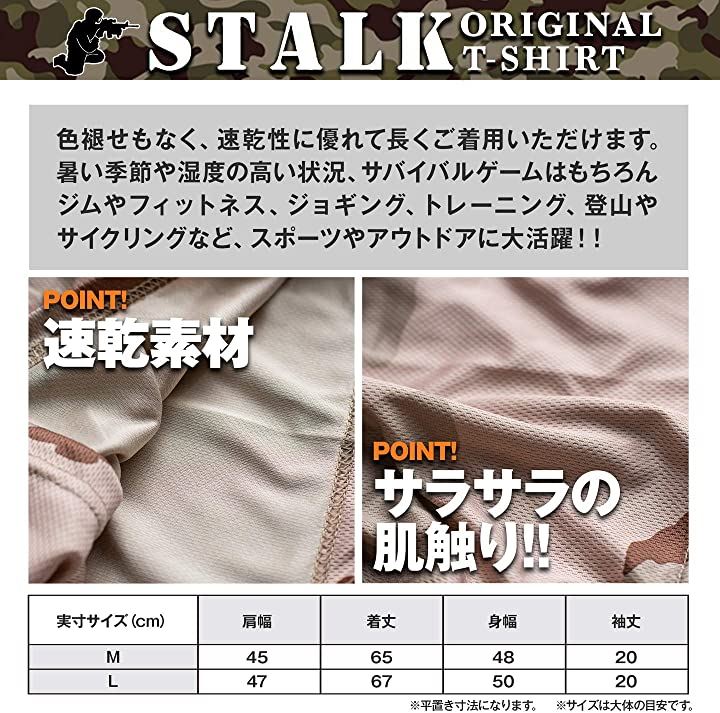 「STALK」最新カラー13種類 迷彩柄 半袖 Tシャツ ストレッチ メッシュ ミリタリー サバゲー(ピクセルデザート, L) |