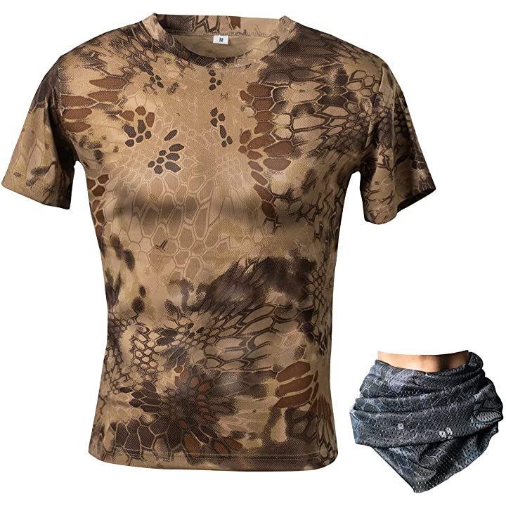 「STALK」最新カラー13種類 迷彩柄 半袖 Tシャツ と紫外線カット・スカーフセット ストレッチ メッシュ ミリタリー サバゲー (マルチカム, XL) |