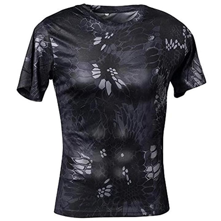 「STALK」最新カラー13種類 迷彩柄 半袖 Tシャツ ストレッチ メッシュ ミリタリー サバゲー(タイフォンブラック, XL) |