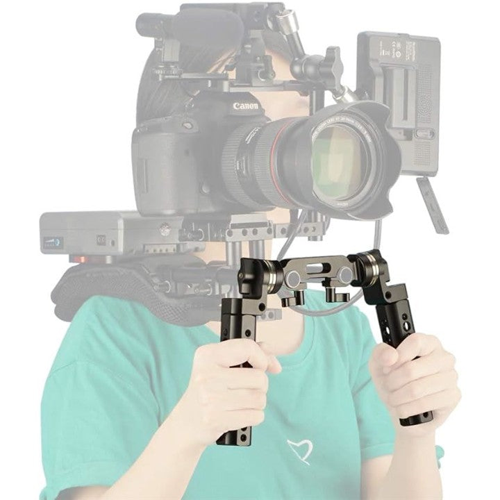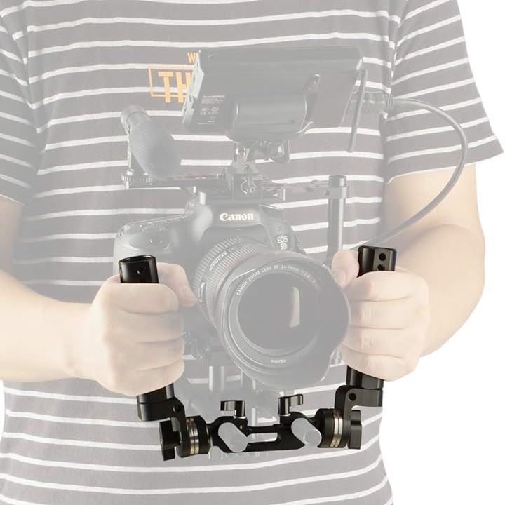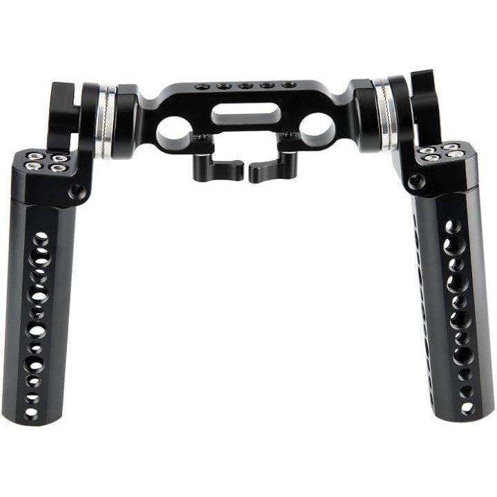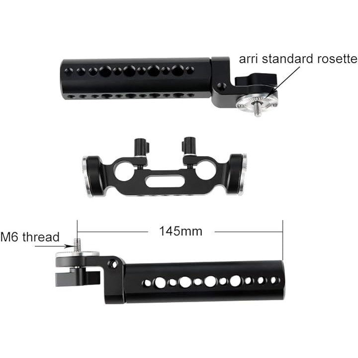 ロゼットハンドルグリップ 2本セット + 15mmダブルロッドクランプ ロゼットアダプター付き 1/4ネジ穴付き ハンドグリップ ロゼット付き DSLRカメラ フォローフォーカス用 ハンドルショルダーリグ用 ―253