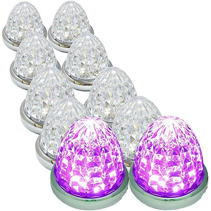 Customize(カスタマイズ)24V トラック用 LED マーカーランプ サイドマーカー 8面クリスタルカット仕様 16LED 汎用 10個セット (パープル) |