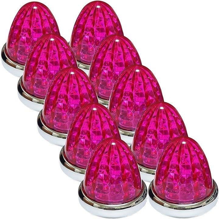 「互換品」Customize(カスタマイズ) 24V トラック用 LED マーカーランプ サイド マーカー 8面クリスタルカット仕様 16LED 汎用 10個 セット (ピンク) |