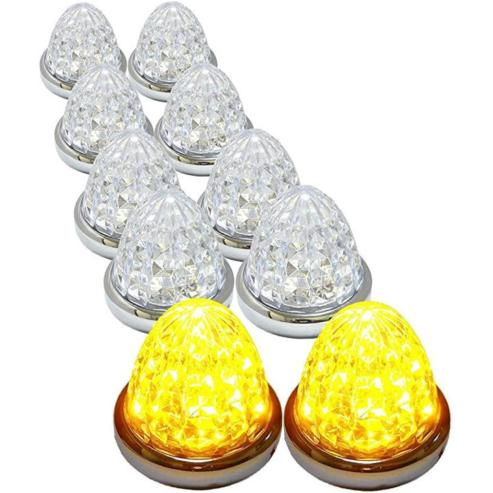 Customize(カスタマイズ) 24V トラック用 LED マーカーランプ サイド マーカー 8面クリスタルカット仕様 16LED 汎用 10個 セット (ホワイト) |