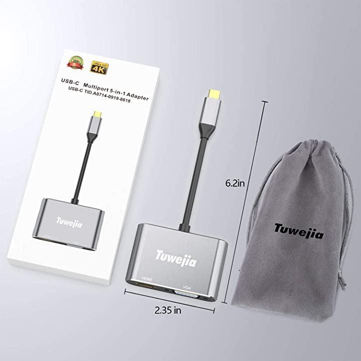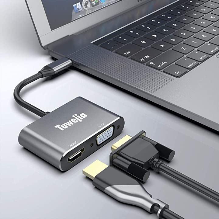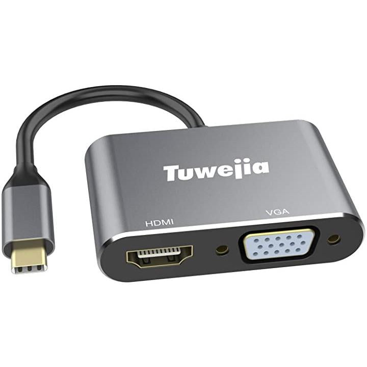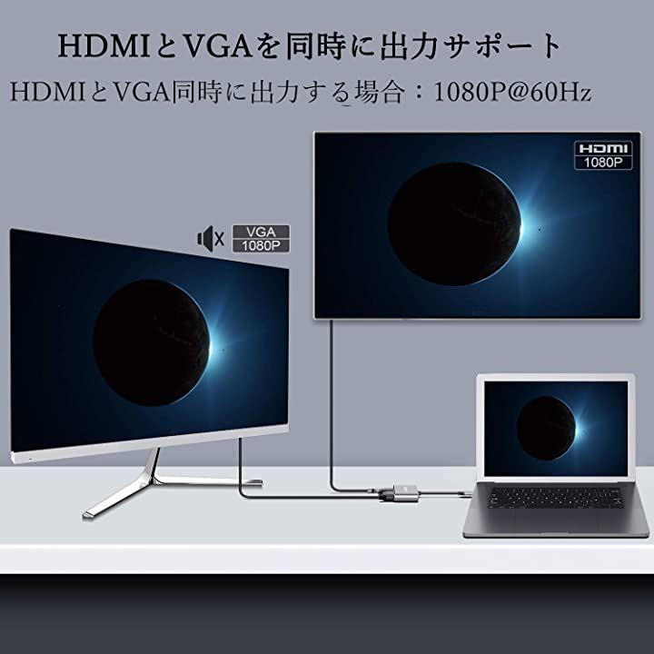 互換品USB Type C to HDMI VGA アダプタ 2 in 1 Thunderbolt 3 to VGA HDMI 4K UHDコンバータ スペースグレイ |