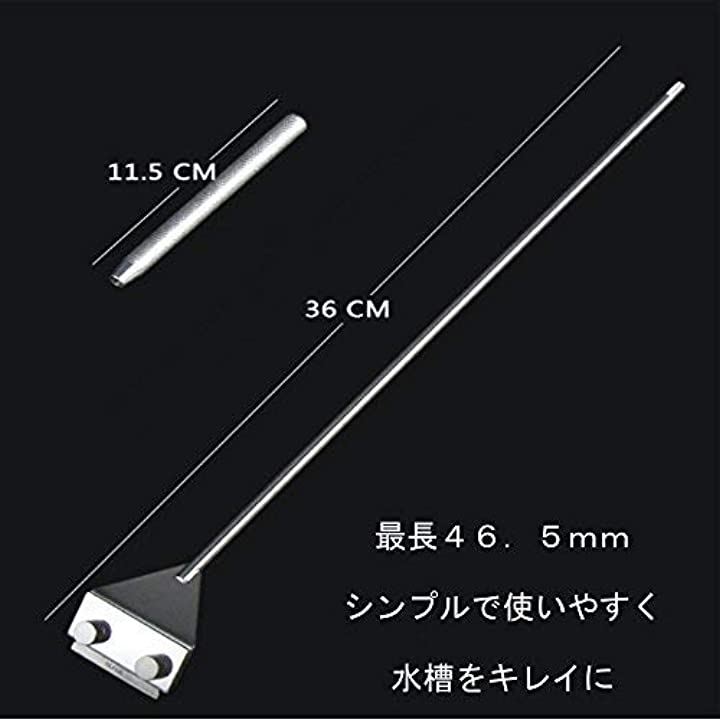 替え刃 10枚 付 最長 46.5cm ガラス クリーナー 水槽 メンテナンス スクレーパー プロレイザー こけ取り 掃除 に シルバー
