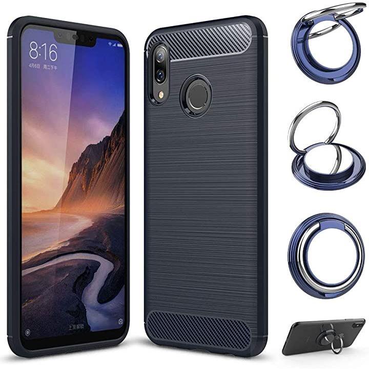 スマホリングスタンド付ケース カバー 炭素繊維 TPU シリコン素材を使用した 保護バンパー アンチグレア素材を使用した耐水、防指紋、散熱加工の超薄型、スタイリッシュバンパーケースブラック