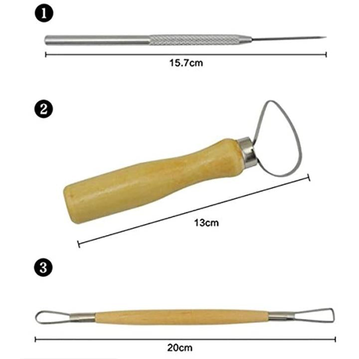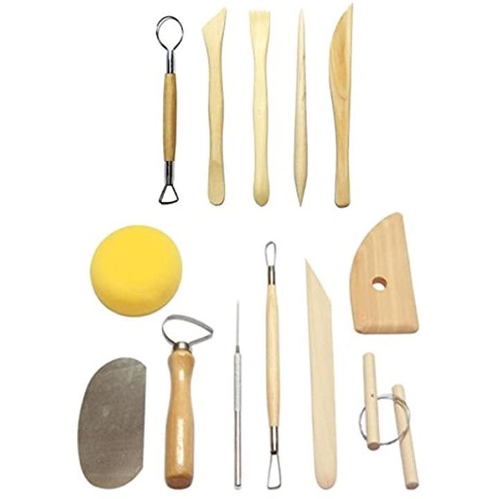 木製 かきべら 13点セット 陶芸道具 彫刻 粘土細工 クリーニングクロス付き フィギュア製作 などにも HH-0002-MM