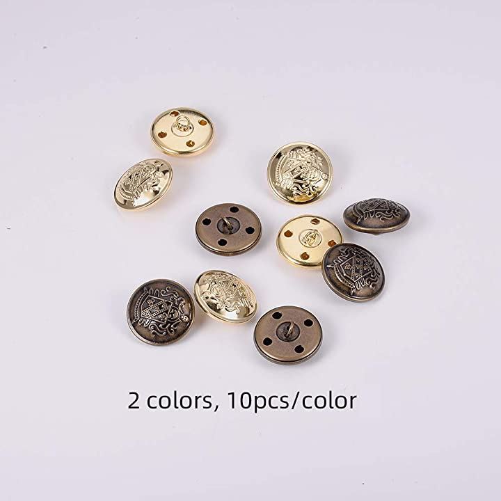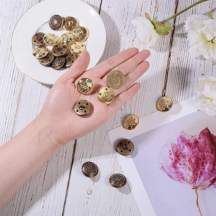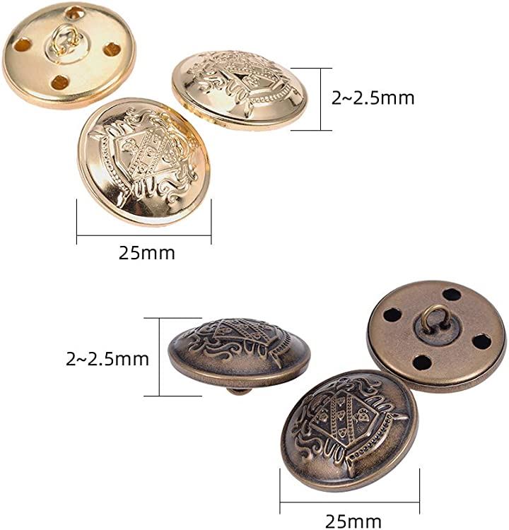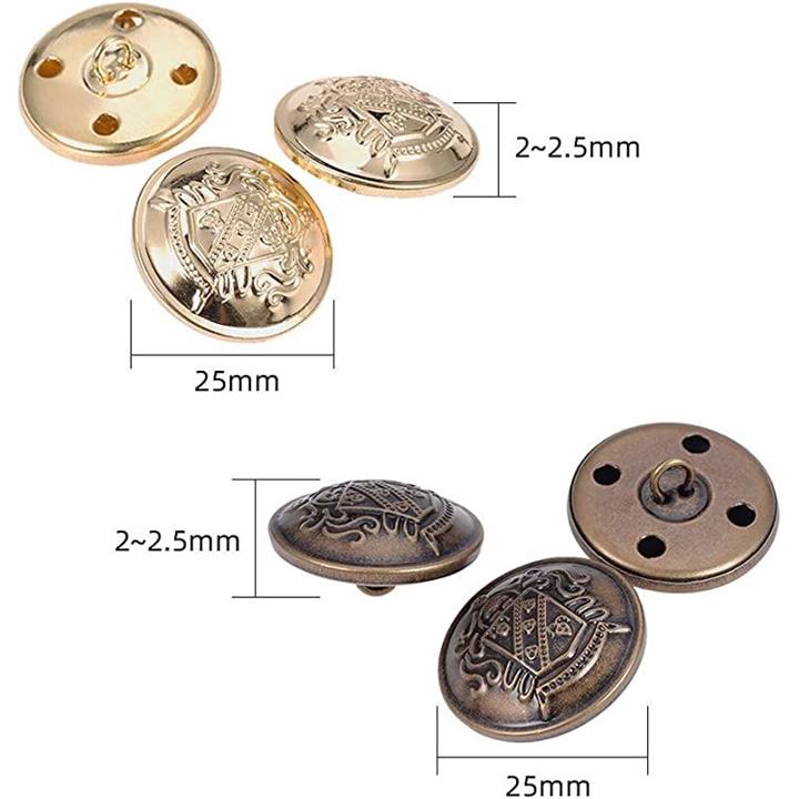 20個 2色 25mm 平らな丸いボタン メタルボタンベルト カーディガンコートユニフォームブ用 アンティークブロンズとゴールド