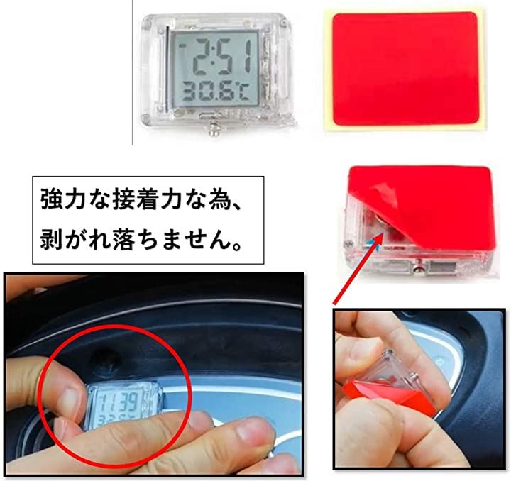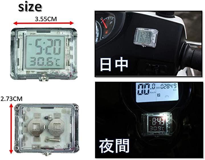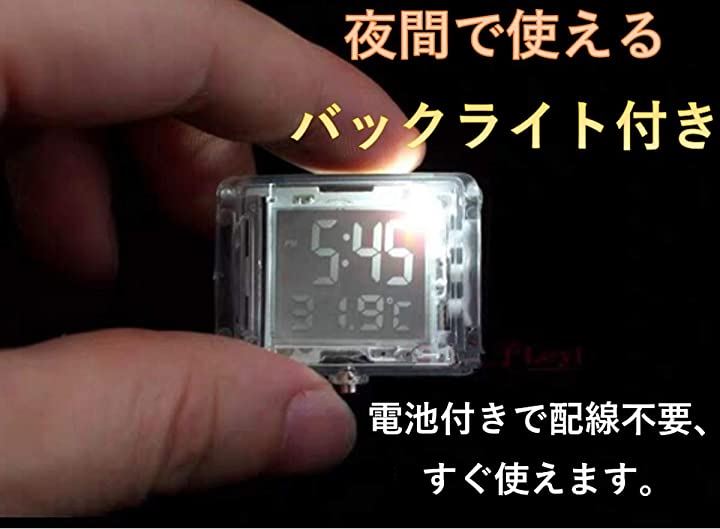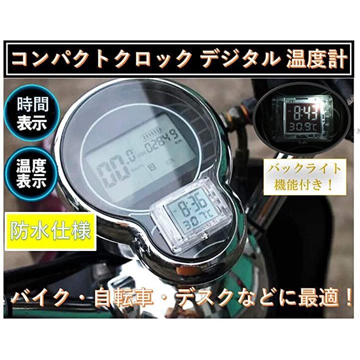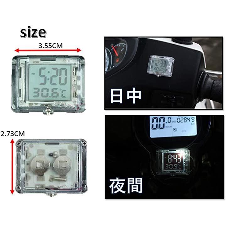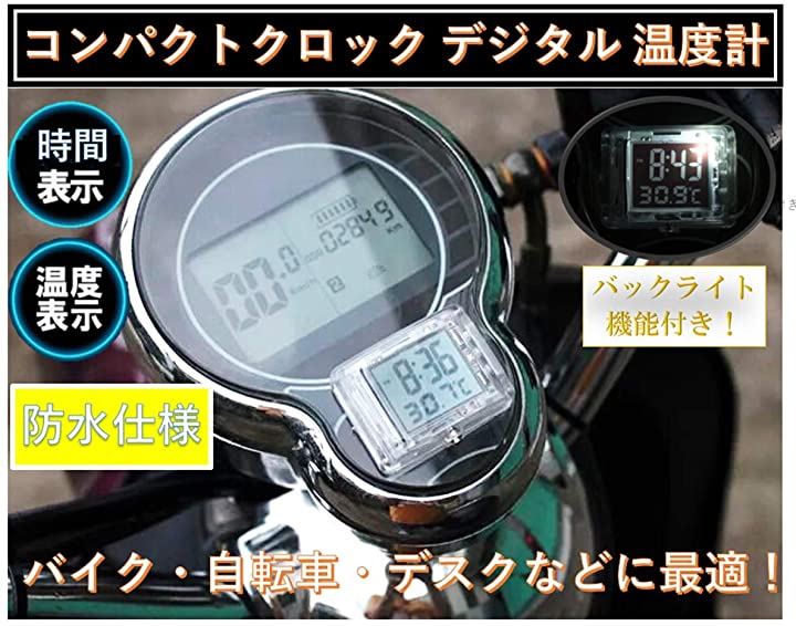 デジタル 温度計 バイク オートバイ 用 防水 コンパクト ミニ クロック 時計 デジタル表示 バックライト 電池式