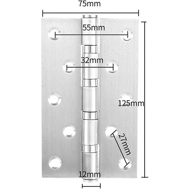 ステンレス丁番2枚入長さ125MM 厚さ2MMドア重45-65KGに適用 平蝶番5inch