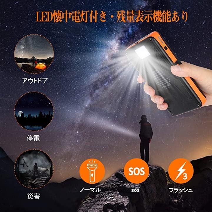・❤「LED懐中電灯付き・残量表示機能あり」 ソーラーバッテリーに高輝度LED照明付き、地震、台風などの災害、アウトドアで大活躍です。