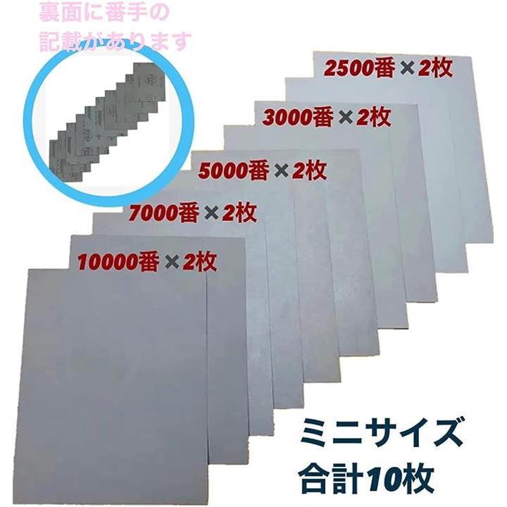 紙やすり セット 2500番 3000番 5000番 7000番 10000番 各2枚入り 合計10枚 耐水ペーパー サンドペーパー 仕上げ 磨き