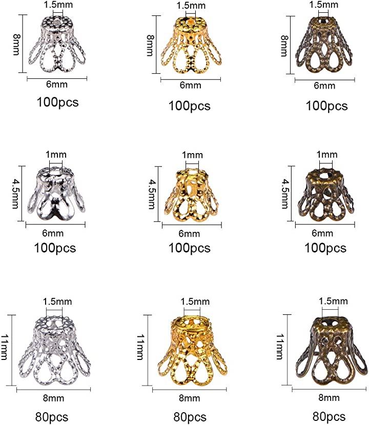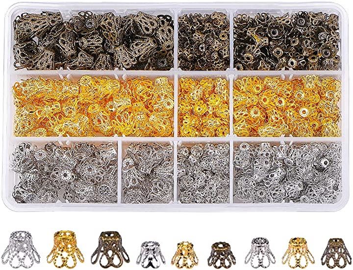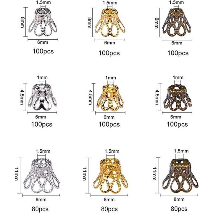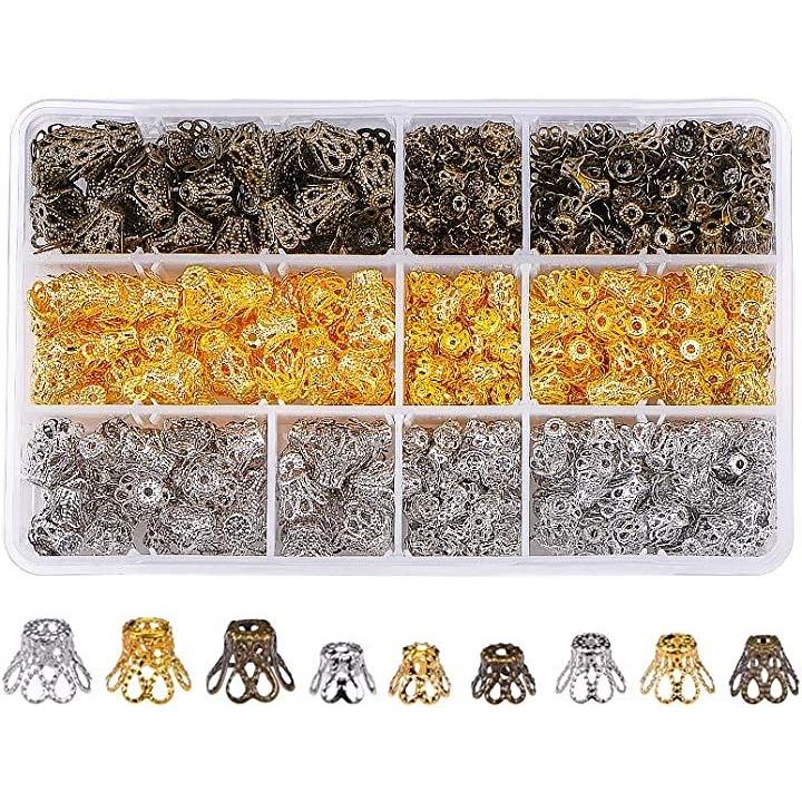 約840個/箱 3種 鉄製 花状 チベット風 ビーズキャップ スペーサービーズ チベットスタイル アクセサリーパーツ DIY用 ジュエリー用 混合色