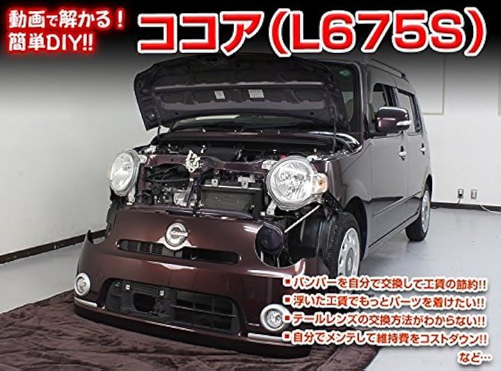 ・ルームランプ交換方法、ライト交換方法・ フロント(リア)バンパー交換方法・内張り交換方法などなど、ココア (L675S) の 各種パーツの取外し方法や取付け方法、改造やチューニングを解説したDVD。