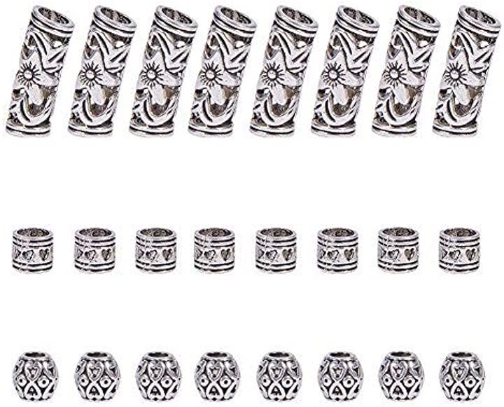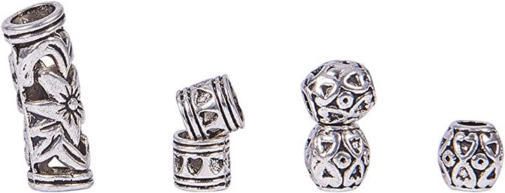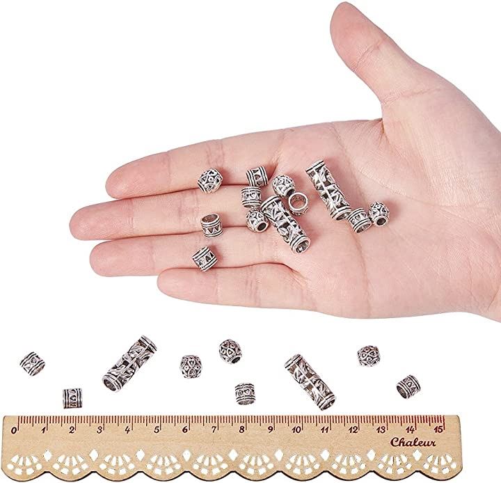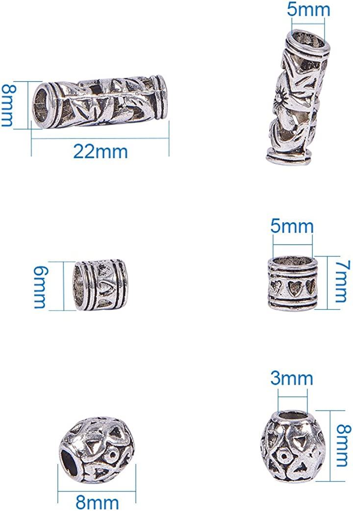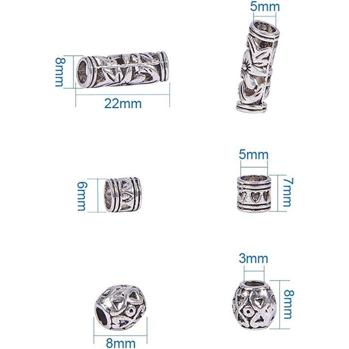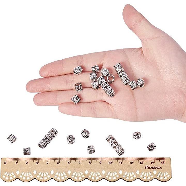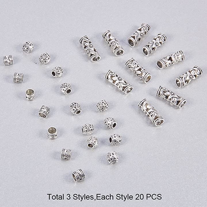 約60個/箱 3種 ドレッドロックビーズ 合金 スペーサービーズ チベットスタイル アクセサリーパーツ 編み込み ヘアコイルカフス ジュエリー用 ハンドメイド 手芸パーツ