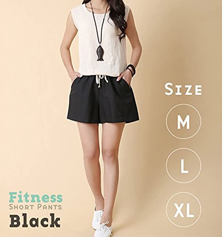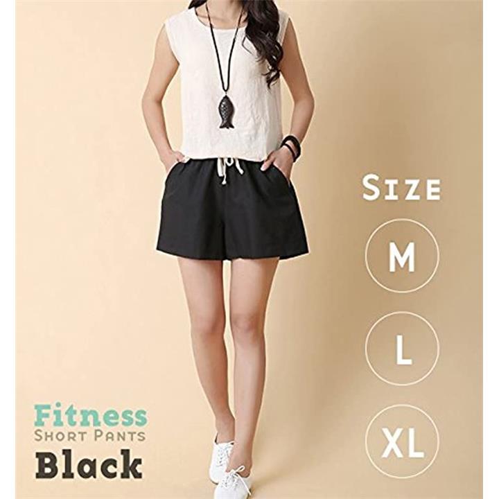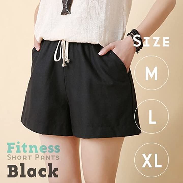 フィットネス ショートパンツ ランニング スポーツ ウエストゴム 短パン キュロット 黒